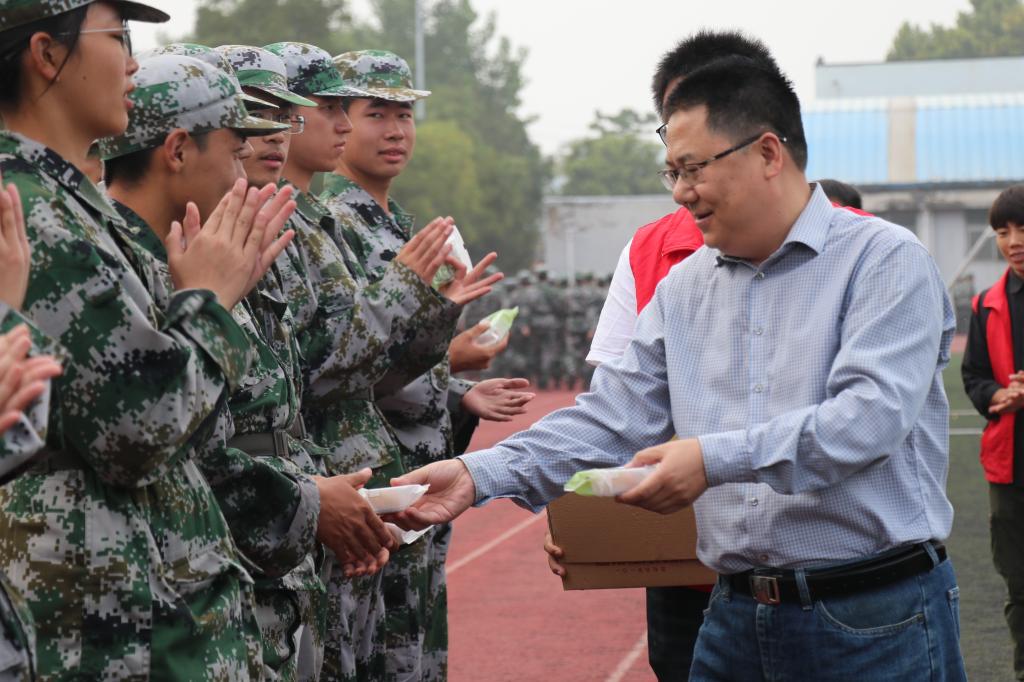 党委副书记、常务副院长张礼刚,党委副书记姜捷、团委负责人郑振亚、2019级辅导员贾茜贝以及学生会志愿者抵达军训现场,为全体参训新生带去中秋佳节的诚挚慰问。