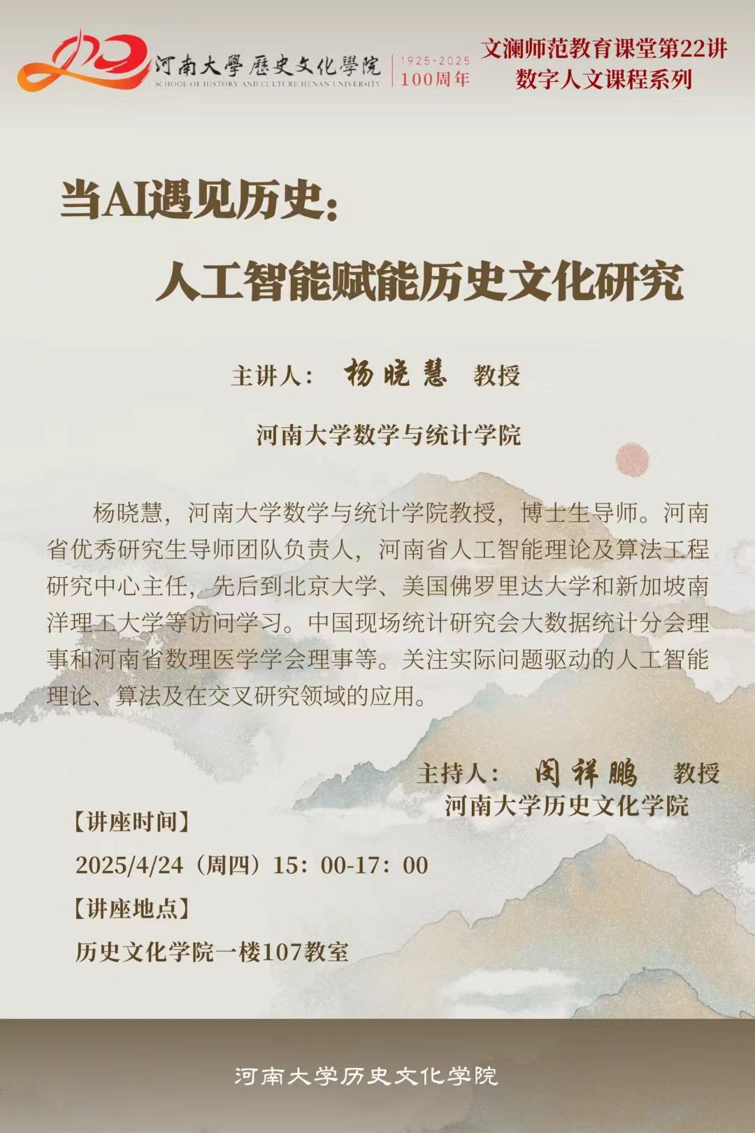 【讲座预告】杨晓慧:当AI遇见历史:人工智能赋能历史文化研究