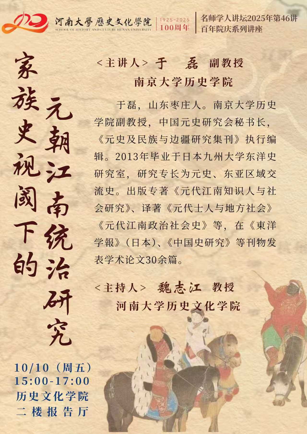 【讲座预告】于磊:家族史视阈下的元朝江南统治研究