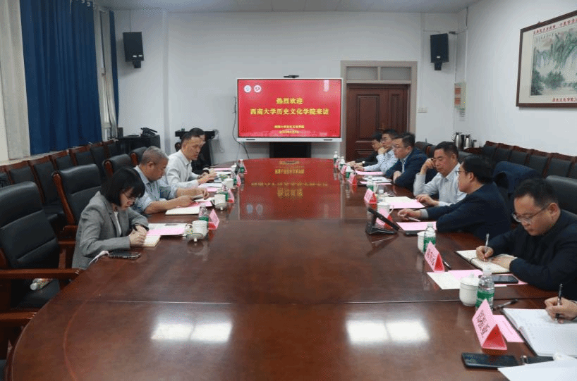 民族学院的来访表示热烈欢迎,并分别对学院党建工作、业务工作进行介绍。他们表示,近年来学院紧抓学校“双一流”建设机遇,聚焦筑峰学科目标任务,强化党建引领,加强重点领域和关键环节改革,进一步强化顶层设计,构筑人才高地,注重创新发展,加强国内外交流,持续推动中国史筑峰学科建设,取得一系列建设成果,共同营造了学院风清气正、干事创业的良好氛围和党建业务互融互促的良好局面;河南大学与西南大学历史底蕴深厚,期待双方加强经验互鉴,深化校际协作,共同探索党建、业务高质量发展新路径。