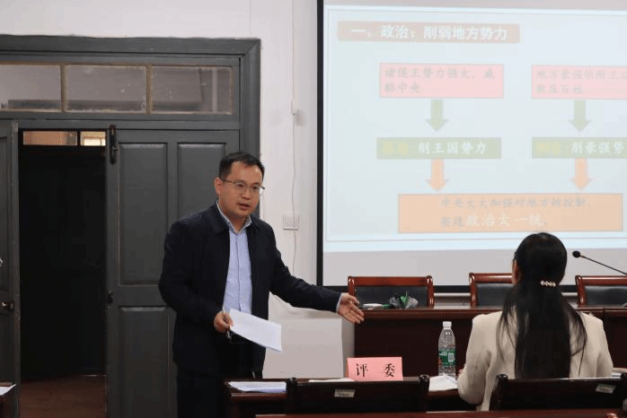 据悉本次比赛以“以赛促教、以赛促学、以赛促改、以赛促建”为宗旨,旨在持续强化教育硕士专业学位研究生的教育教学实践能力培养,不断提升学科教学(历史)专业研究生的培养质量。大赛通过教学设计、模拟讲课、现场答辩等环节,全方位考察参赛学生的教学能力。参赛选手凭借精心的教学设计、自信大方的仪态和出色的控场能力,展现出了对于教育事业的热爱。评委老师们对参赛选手的表现进行了精准点评,指出问题并引导学生深入思考,助力实现教学育人目标。