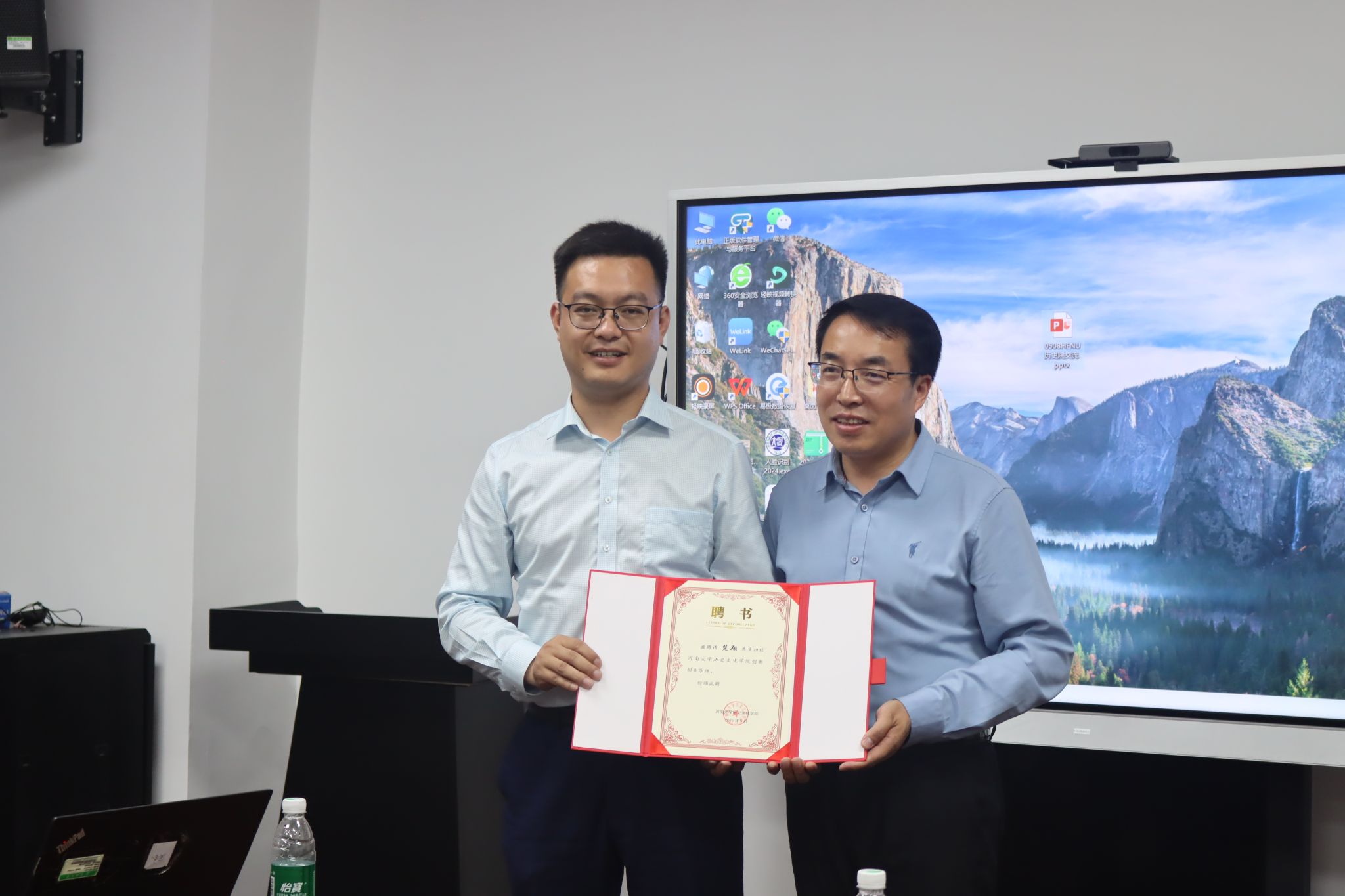 院长祁琛云代表学院向楚翔颁发聘书,正式聘请楚翔为鱼虾蟹骰宝