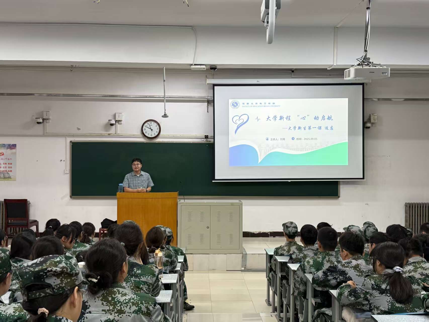 随后,学院邀请河南大学教育学部刘博老师为新生开展“大学新程‘心’动启航”心理健康主题报告。结合大学新生常见的心理适应问题,刘博讲解了情绪管理、压力应对、人际交往以及自我认知等多方面内容,引导同学们关注自身心理健康,掌握心理调适的基本方法,有效增强了新生的心理韧性与适应能力。