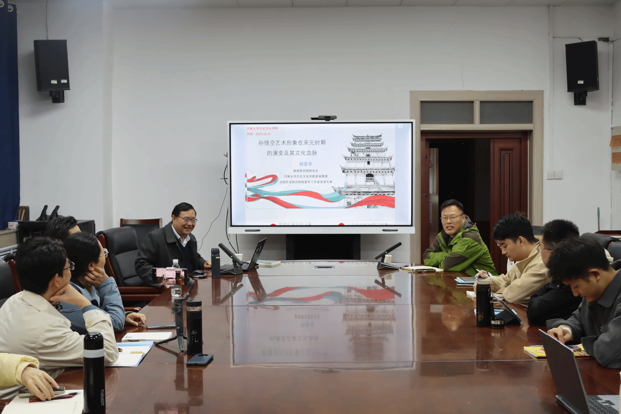 杨富学在讲座伊始点明学界此前误将《唐僧取经图》称作《玄奘取经图》,混淆传说与历史的做法是不可取的;同时批驳了学界多将其年代判定为西夏的观点。他提出敦煌壁画《唐僧取经图》均为元代遗存、非西夏的观点,并从多维度举证:其一,西夏“尚红贱绿”,元代阿尔泰民族“尚蓝绿”,与榆林窟供养人壁画“官员着绿衣”细节契合;其二,西夏统治时敦煌荒无人烟、莫高窟遭掩埋,西夏无力开凿新窟;其三,壁画中烧酒酿造场景的技术元代才出现;其四,壁画中的西夏文,可由元朝多西夏人任高官、或主持建窟解释。这些证据确定《唐僧取经图》为元代作品,为孙悟空艺术形象演变研究奠定基础。随后,杨富学聚焦孙悟空艺术形象从宋金到元明的演变,通过对照话本、杂剧、洞窟壁画等载体,揭示其关键转变:宋金时期,孙悟空为“白衣秀才”形象,身着白衣、持伞甚至戴东坡巾,仅略带猴相,且在取经图中是可有可无的角色,部分场景仅以“唐僧+马”代表取经团队;元代时形象发生根本转变,杨景贤《西游记杂剧》将其塑造成“猴头人身、手执生金棍”,兼具野性与诙谐的英雄气质,虽仍是配角却有“主角转换”特征,与宋金“矮小跟随”形象反差鲜明;此外,杂剧中孙悟空由丑角扮演,非反派,而是以幽默、不守规矩的形象成为突破传统的符号,为明代《西游记》“齐天大圣”形象奠定基础。杨富学最后探寻孙悟空艺术形象的血脉源头,在梳理学界主流观点时提出独到见解:他对陈寅恪、季羡林等学者“孙悟空形象融合印度《罗摩衍那》神猴哈里曼与中国神话‘无支祁’特征”的观点持批判态度,并进一步补充,认为孙悟空形象更体现元代多元文化交融特质,是“印度文化基因+中国传统文化+元代多民族文化”共同作用的结果。