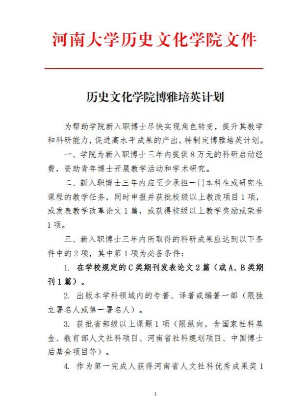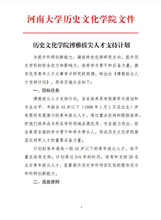 自两项青年人才支持计划实施以来,已有10名教师被纳入博雅拔尖计划、23名教师被纳入博雅培英计划,培养成效显著。王战扬、贺怀锴通过河南省高层次和急需紧缺人才职称评聘“绿色通道”晋升正高职称,李雯雯、贺怀锴获选河南大学百人计划B岗;朱旭亮、顾纯光等11人获批国家社科基金青年项目,陈锴、李泽源分别在《中国史研究》《世界民族》等权威期刊发表论文;熊钿、王亚萍等获国家资助博士后研究人员计划B、C档,李泽源、王博凯等获批博士后特别资助,李鹏辉、谢佳芮等获批博士后面上基金项目;李彬森、秦存誉等获批河南省兴文化工程文化研究专项,陈时羽等获河南省博士后资助项目;韩鼎等获批省级校改项目;熊钿入选河南省“双一流”高校高层次人才境外培养项目,赴哈佛大学进行为期一年的访学。