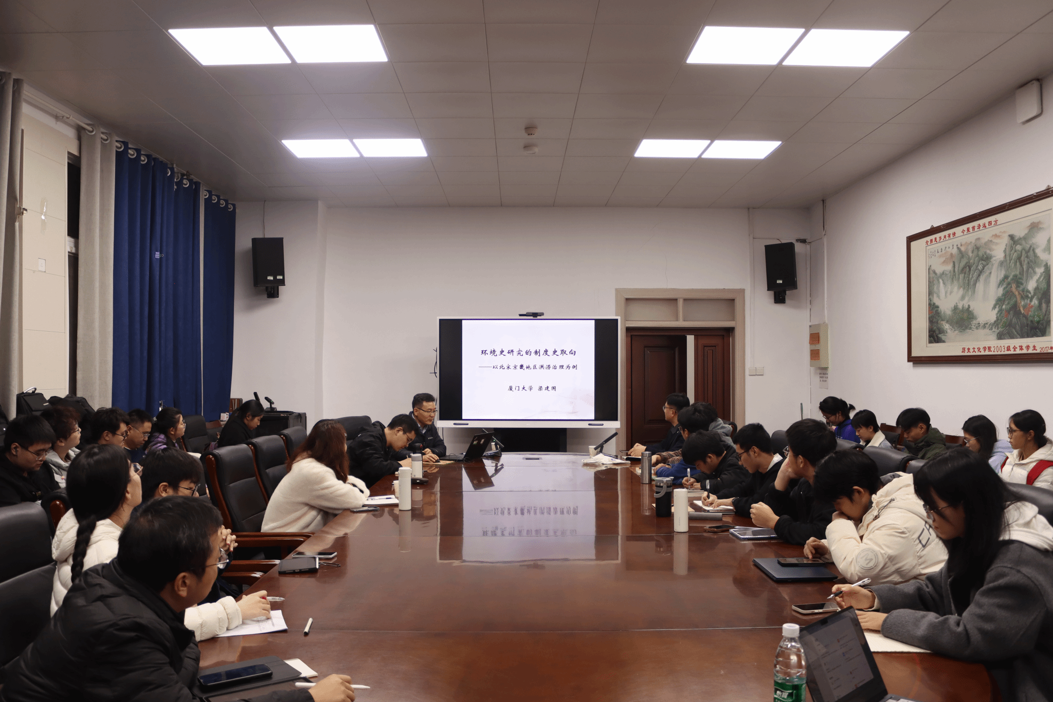 本次讲座中,梁建国以动态视角、创新角度巧妙诠释了环境史研究中的制度史取向。为广大师生揭示环境史研究潜力,鼓励大家投入到交叉领域研究中去。在理清宋代洪涝治理制度演进的同时,让听者更深刻理解环境史与制度史结合的研究方法。