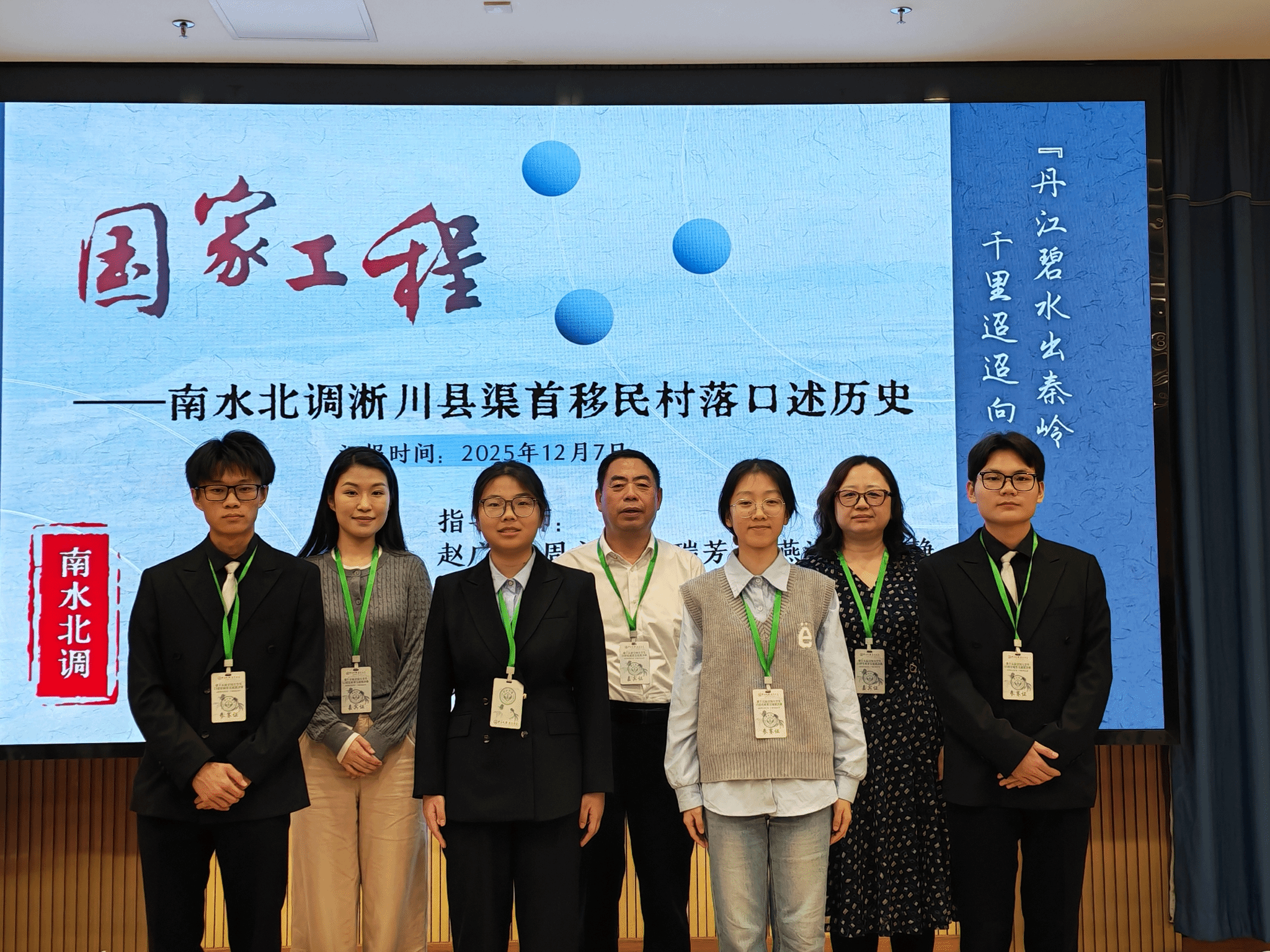 2023级、2024级历史学专业詹本维、娄洞梁、殷顺一、敬婧、王奕涵、刘梦华等六位本科生组成。团队以国家重大工程——南水北调淅川县渠首移民村落为研究对象,在赵广军、周文凯、王瑞芳、付燕鸿、胡优静等五位老师的指导下,历时数月深入访谈、整理素材、修订文本,最终完成近三十三万字的口述史成果整理稿。