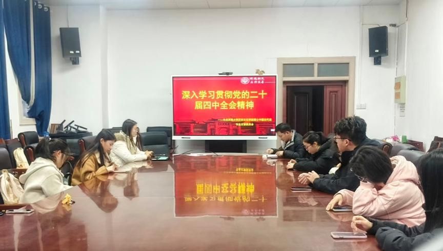 硕士中国古代史专业党支部在学院三楼会议室开展“深入学习贯彻党的二十届四中全会精神”主题党日活动,支部书记姜汉西带领全体党员认真学习《中国共产党第二十届中央委员会第四次全体会议公报》,并围绕全会精神与支部发展、个人成长等内容进行深入研讨,在理论学习和交流升华中,强化了支部的思想引领力和精神凝聚力。