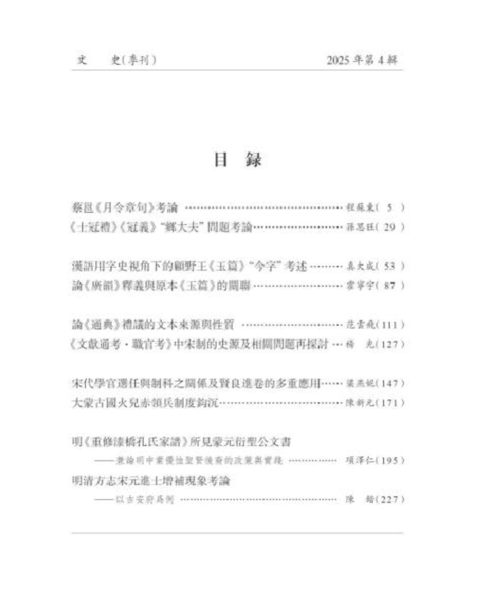 青年教师陈锴在《文史》2025年第4辑刊发专题论文《明清方志宋元进士增补现象考论——以吉安府为例》。