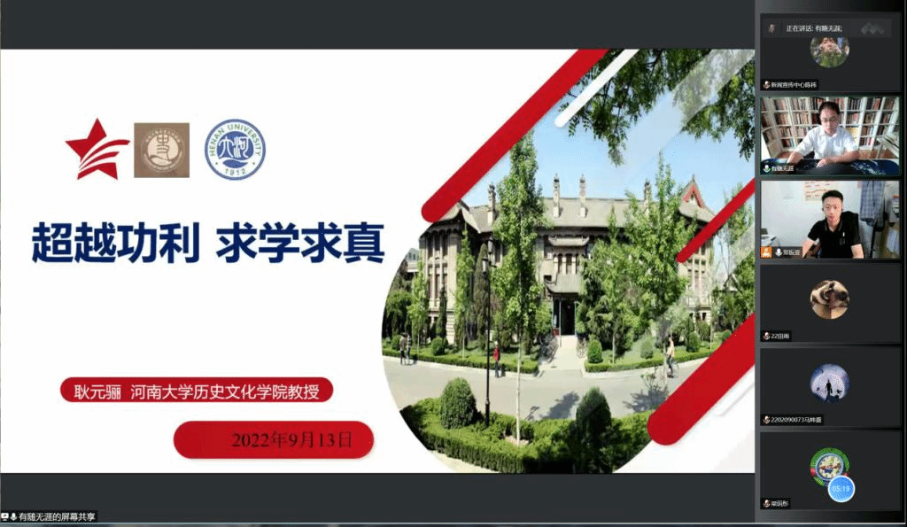 的同学们要做文化的传承者,超越功利,求学求真。紧接着,他从读书就是生活、读书要读经典和读书讲究方法三方面阐释了“读书”没有功利。他建议同学们在“专业化”和“业余化”间找到平衡,精读人文学经典,成为一个大写的人。他表示,求学要求真求实,并借助事实证明了历史是人类的历史以及历史学的重要性,希望同学们培养“问题意识”,最大限度地调动阅读的积极性,潜心阅读思考,踏上求真的旅程。接着,他阐述了何为学术研究上的独立精神、自由思想。借助王国维的“学术研究三重境界”和陈寅恪的“独立之精神,自由之思想”,他建议同学们要保持独立思考,保持开阔的视野,含英咀华、沉潜探析,得出自己的结论。最后,他期待与同学们在铁塔湖畔相见。